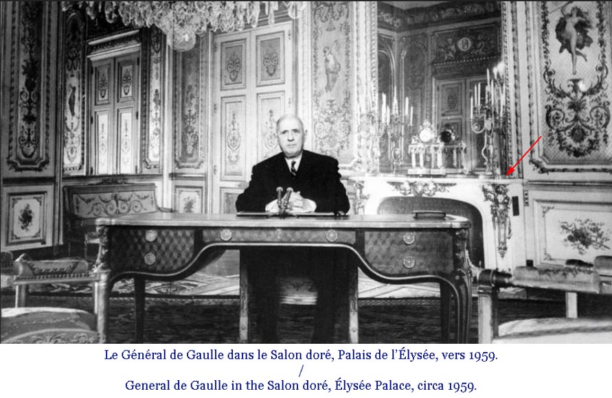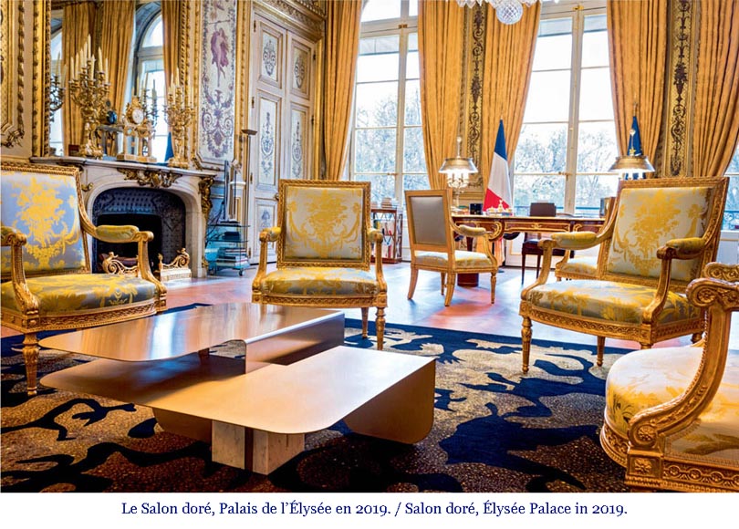 A version of this fireplace can also be found at the Élysée Palace, in the Salon Doré, which serves as the official office of the Presidents of the Fifth Republic. This fireplace, adorned with the “N” of Napoleon III, was commissioned by the Emperor in 1861 to decorate the room intended to serve as the bedroom of Empress Eugénie.
