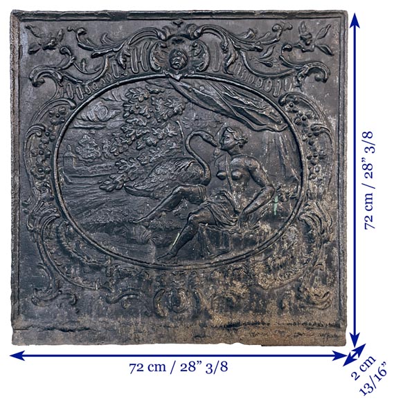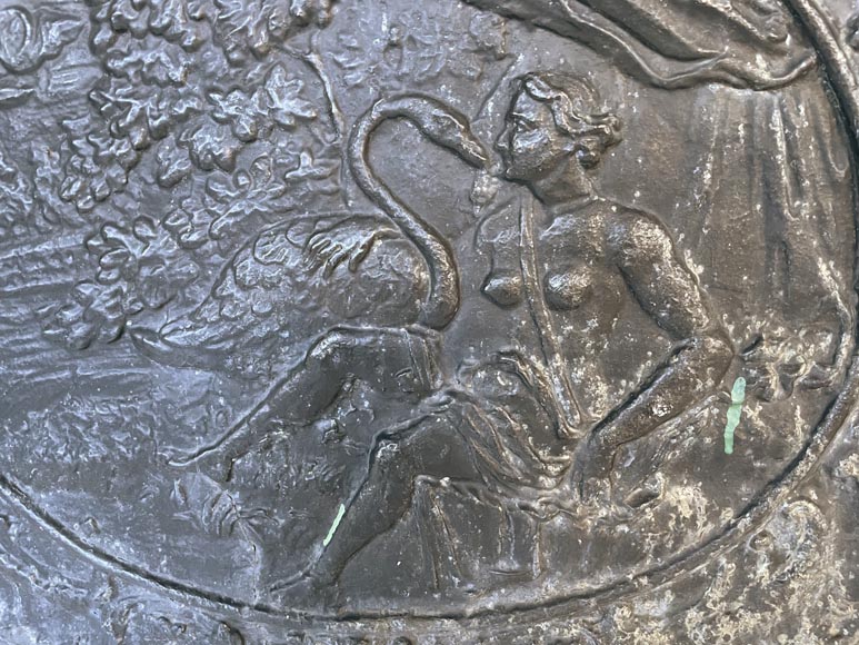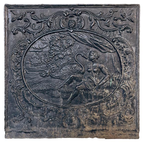 "Leda and the Swan", small Louis XV style fireback, 19th century.