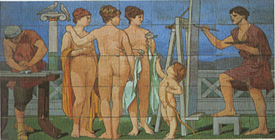In London in 1886, Paul Sédille declared before the members of the British Royal Institute of Architects that “architecture is a direct emanation of Nature […] colour is the very manifestation of Nature.” He concluded his talk asking if polychrome was not the source of Antique architecture’s perfection. Since 1871, in the line of Hittorff, he constantly championed the principle of colour in architecture, repeating over and over that polychrome was a universal principle in architecture, and that its eclipse in France since the 18th century could only be a short term phase. He recalled that Greek and Roman architecture were polychrome; spoke of Viollet-le-Duc’s attempts to restore the inside and outside of Notre-Dame de Paris to its original polychrome state; and declared that Della Robbia’s enamels were his perfect idea of architectural ceramics, although he himself refused to use the human figure in his large scale polychrome pieces.