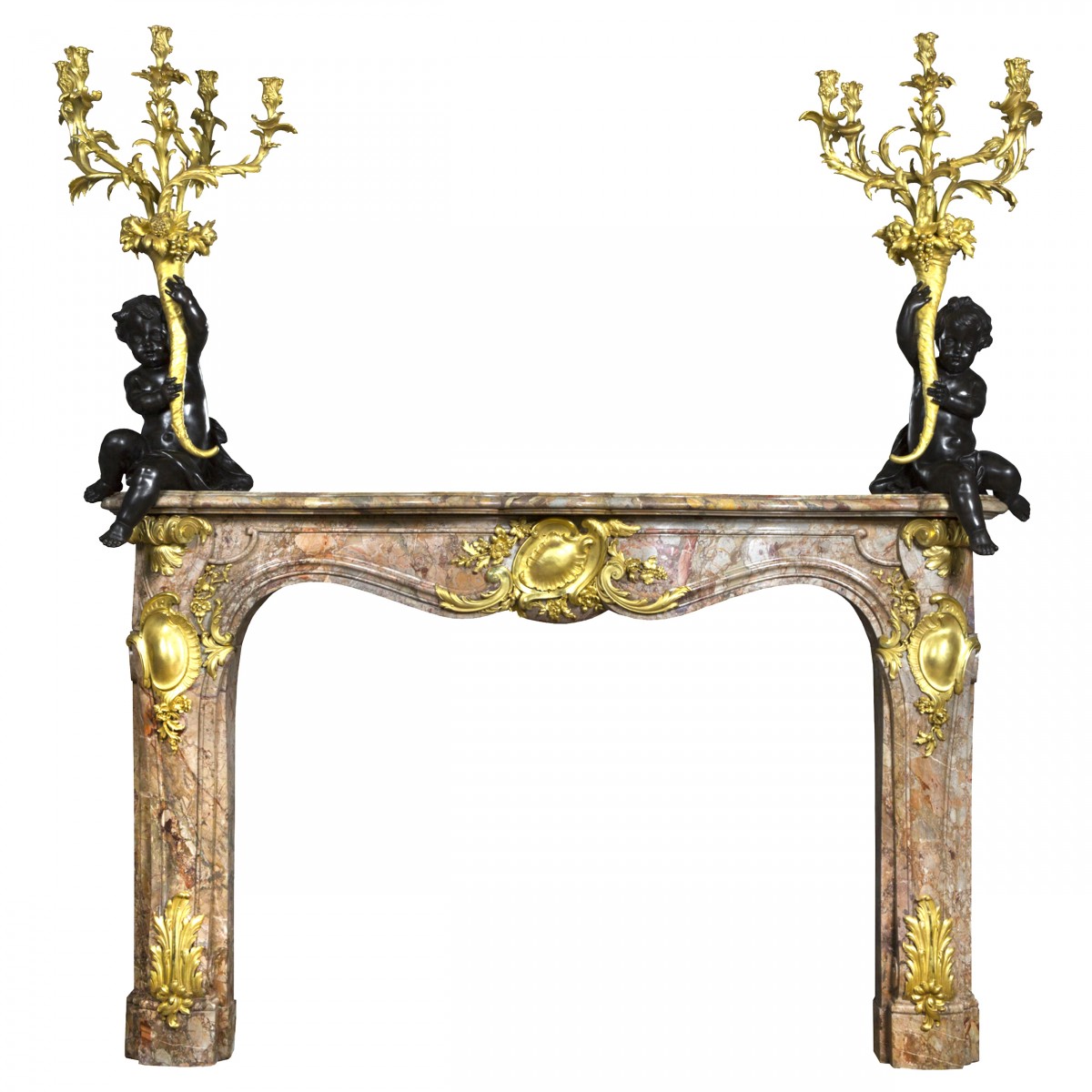 Cornelius Vanderbilt II bought the mansion of his grand-father in New York in 1877 and from the early 1890’s he started an ambitious renovation work and massive extension asking the best artists of the world. Alfred-Emmanuel Beurdeley was commissioned to create furniture et diverse decorative art to furnish the Manhattan mansion and also the Newport cottage. He realized for the business man, a copy of the pair of consoles from Georges Jacob for the comte d'Artois, a copy of Marie-Antoinette’s table and a fireplace inspired by a model by Pierre Contant d'Ivry for the Salon of the duchesse d'Orléans in the Palais Royal, dated 1752 – 1753.