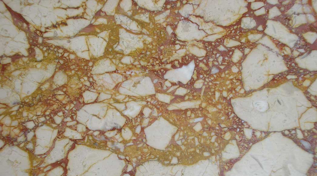 There are many varieties of Breche in a broad range of colors and motifs: Breche de Medous, Breche d’Alep, Breche de Saint-Maximin and yellow Breche de Benou.
