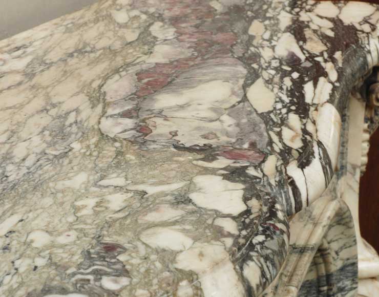 Breche marbles are used both in furniture and mantels. The very graphic effect of Breche d'Alep marble for example was very popular during the 18th century. It is found in many of the beautiful dwellings of the time like in the Chateau of Chantilly.