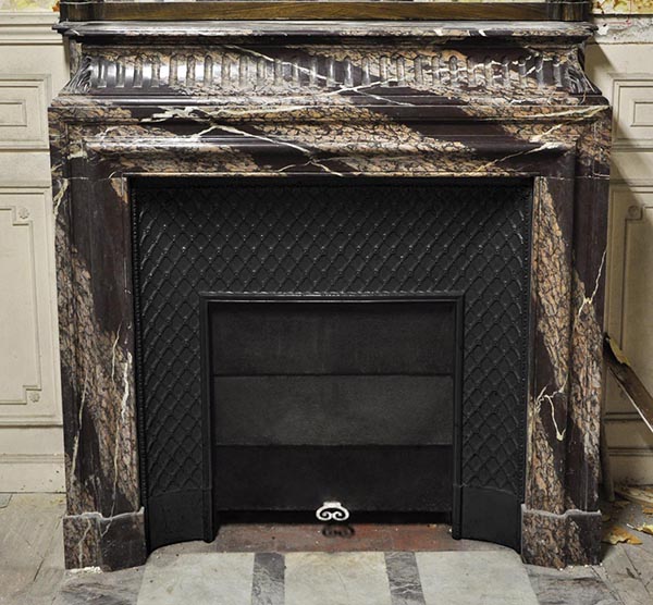 Antique Louis XIV style fireplace with acroterion made out of Rubané Campan marble, 19th century (ref. 2716)