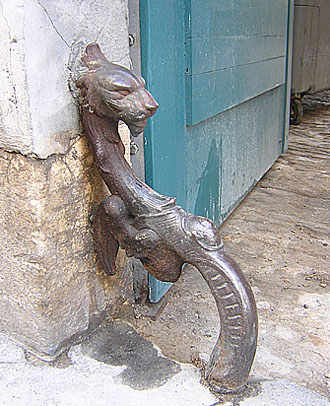 - photo 2 : example of a metal guard-stone presenting a winged lion head.
