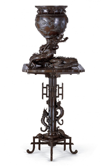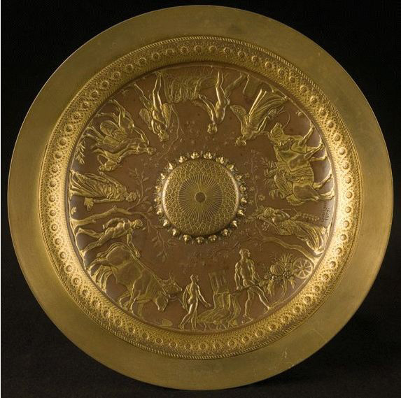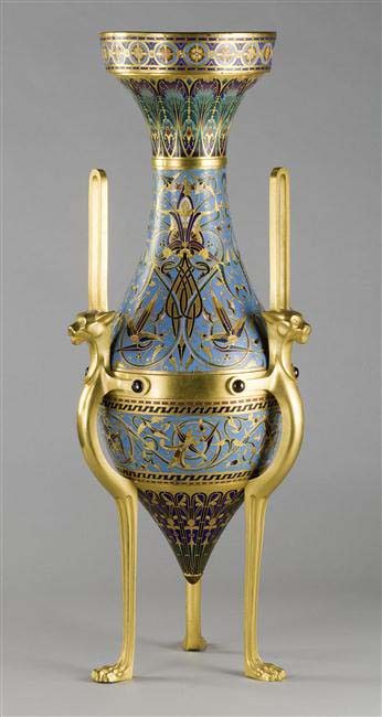 Statues aside, he products a great deal of decorative artifacts, such as clocks, vases, mirrors, etc. Since 1855, Ferdinand Barbedienne collaborates with the famous decoration designer Louis-Constant Sévin (1821-1888). Joining the firm as a sculptor-designer, he stays loyal to it his life long, always finding more new designs for daily objects, which hence become true art works. Sevin’s creations, specialized in the “Neo-Greek” style, were particularly appreciated for antiquity reference in decorative arts, just like the great mirror preserved by the Orsay Museum. He also teams up with enamelers including Alfred Serre, and develops a set of “cloisonnés” enamels that made the headlines at the World's Fair of 1862 in London, which was the very beginning of the art of enamel’s return. In collaboration with Serre, Barbedienne realized between 1878 and 1889 the Monumental Clock in Renaissance style, decorated with enamels, which is preserved in the Paris City Hall.