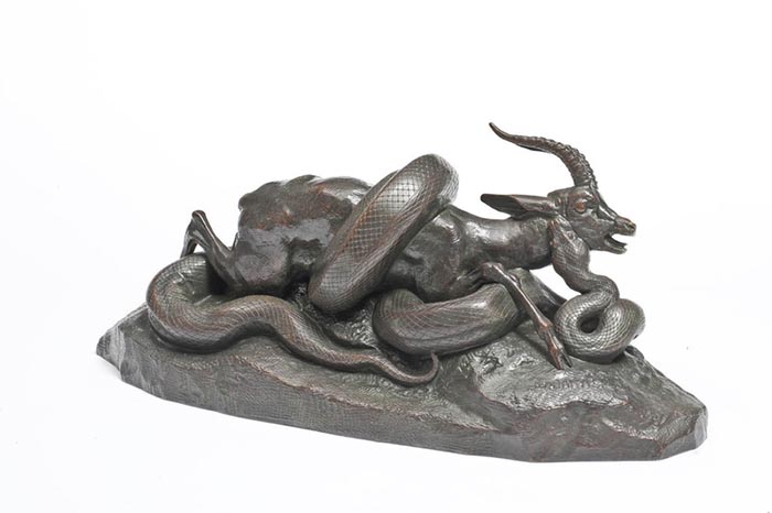 A Parisian bronze maker and caster, Ferdinand Barbedienne (1810-1892) creates a firm in 1839 in collaboration with Achille Collas, the inventor of the mechanical method to obtain copies of sculptures at a smaller scale. With this groundbreaking proceed, they facilitated an unprecedented production. Under the “Collas et Barbedienne” name, they specialized in Antiquity copies and perfected new chemical methods for the color and patina finish of their bronzes. As a true Romantic, Ferdinand Barbedienne is committed to democratization of arts, he thus realizes numerous Antiquity copies and stimulates his contemporaries’ works broadcasting. A great deal of famous sculptures are hence cast by the Barbedienne Foundry. All his life, Barbedienne co-worked with the greatest artists, sculptors or designers of his time, such as Edouard Lievre, Ferdinand Levillain, Attarge, Aizelin, Barye or Fremiet.
