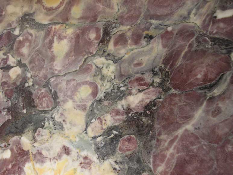 The original quarry, opened during the 17th century, is found in Serravezza, in the Carrara region in Italy. Its variety is thus called “Fior di Pesco Apuano” (Fleur de Pêcher Apuane) in order to distinguish it from its greek homonym, originally from Eretria. This marble is a breche marble made up of irregular shades of purple, red and pink. During the 17th century, it was used a lot for religious decoration. It was also used a lot under the Second Empire, for example to decorate the opera house in Paris (Palais Garnier). During the 20th century, quarries that produced this marble were found in Versilia and Garfagnana, and more recently in Renana, Forno and Massa. Today, this marble is rarely extracted and is thus becoming more and more rare.