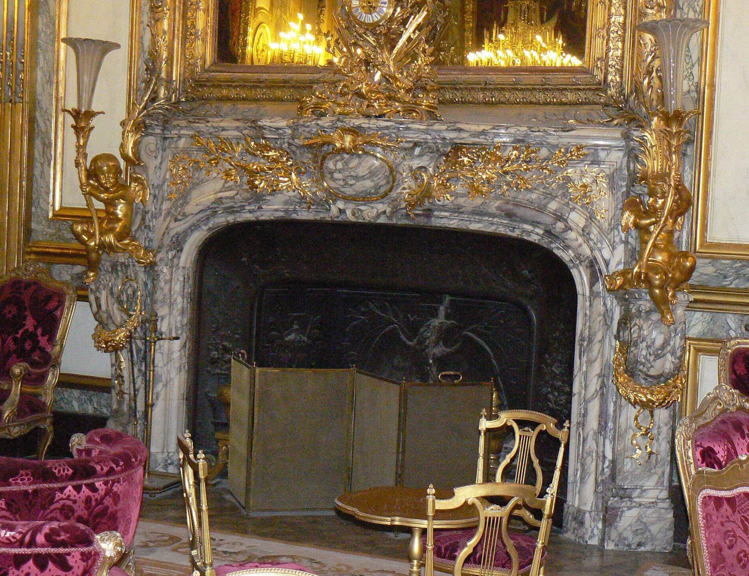 An antique fireplace made out of Fleur de Pêcher marble is found in The Marble House, in Newport, in United States, and was made by Jules Allard.