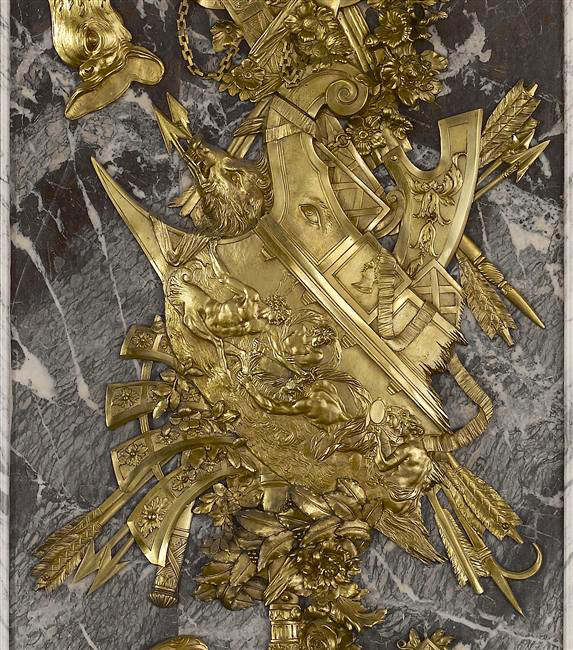 Under Louis XV, the use of gilt bronze continued to grow. Rococo-style furnishings were imaginative, with their fantasy, curved lines, asymmetry, and a sense of lightness and femininity. Gilt-bronze decorations were expertly crafted and represented rockeries, foliage, acanthus leaves, rushes, and shells. Louis XVI-style ornaments were much more minimalistic, inspired by Antiquity and nature, and many were especially designed for Marie-Antoinette. Tied ribbons, garlands, and draperies were frequent motifs. During the Second Empire and the Restauration, gilt bronze rose again. Napoleon III furnishings stand out for the abundance of richly crafted decorations, especially gilt bronze. An admirer of Marie-Antoinette, Empress Eugénie commissioned furnishings resembling the Louis XVI style.