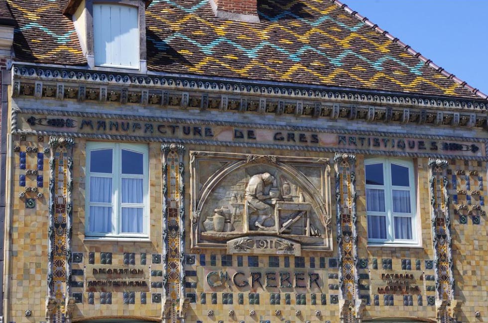 After this, Paul Gréber (Beauvais 1851 – Bonneil les Eaux, 1915) moved to Pont d'Allonne where he produced blue and grey salt glaze, following the Rhine tradition. His oldest son, Edouard (1885 – 1961) was also a ceramicist but in the industrial field. Charles Gréber (Beauvais 1853 – 1935) took on the running of the stoneware factory in Beauvais alone, situated on rue de Calais, in 1900. He was a talented Ceramicist, he expanded the factory which developed an international reputation. He produced flamed stoneware and architectural ceramic covering which became one of the business's specialties. He decorated a number of French buildings, at first in an “art nouveau” style and then, after 1920, in an “art déco” style. In 1933 he handed the business over to his nephew Pierre Gréber (Beauvais 1896 – Cabris 1965), which he ran until 1961, when the factory stopped producing, Pierre Gréber's fault. His ceramic pieces, essentially made out of enameled stoneware, were enhanced by lively and bright colours. He also specialised in the modern use of dishes. It was under his leadership that the “Gréber myth” was born, during the 1950s – 1960s. All marriages, retirements, sporting competitions at the time came with a ceramic Gréber gift. François Gréber (Beauvais 1925-1974), only daughter of Pierre, who was a sculptor, ceramicist, painter, did not take on the business despite repeated requests from her father. In 1962, the business closed and the premises were sold. But the classification of the facade and decorated roofs by Charles and Henri as Historical monuments, saved the family's important patrimony.
