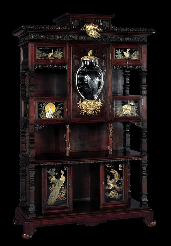 Several cabinetmakers, mostly Parisians, specialized into Japanese furniture. Gabriel Viardot was the leader of those producers, their oldest representative, and the one who had the longest influence. This cabinet (picture 5) well embodies the period and the artwork of the creator.