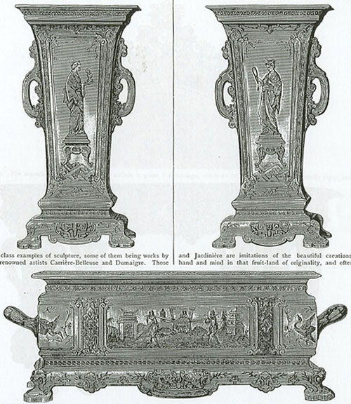 In the field of the objects of art, the boutique Escalier de Cristal , opened at the beginning of the 19th century, had a high production, and enjoyed a great reputation. It collaborated with many craftsmen: bronze makers, cabinetmakers, lacquerware makers and painters who realized numerous decorative objects to adorn the shops (picture 8).