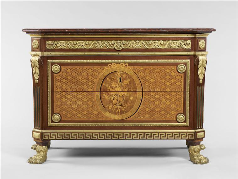 The Queen Marie-Antoinette, because of her various commissions, and the “marchands-merciers” (which are a French type of entrepreneur) played an important part into the development and diffusion of this style. The marchands-merciers, who were at the same time antique dealers and interior decorators, established the link between the rich commissioners and the artists: it was in their elegant shops of the Louvre or of the street Saint-Honoré that the high people of this world went to receive some pieces of advice and renew their furniture. The most recent acquisitions of the Queen or of the Count of Condé, were exposed there before being brought to Versailles, quickly, the fashionable people would buy something that would look alike. Creating and breaking fashions, it is also all the style of this period that they impacted.