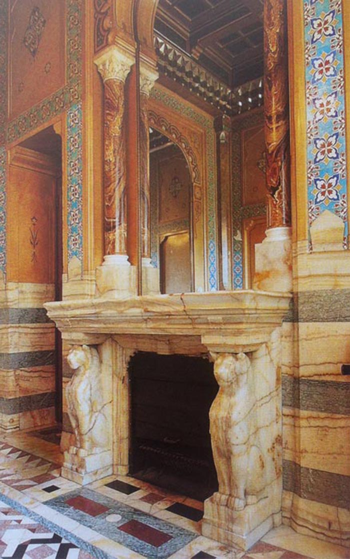 During the conquest of Algeria, onyx careers are rediscovered in 1849. From then, onyx will be one of the most coveted material in Europe. The Hôtel de la Païva in Paris, named after the socialite who had it built from 1856 to 1865 at 25, Avenue des Champs-Élysées, overflows with sumptuous onyx decorations, as the Neo-Moorish style bathroom, and especially its imposing fireplace with lion’s paws.