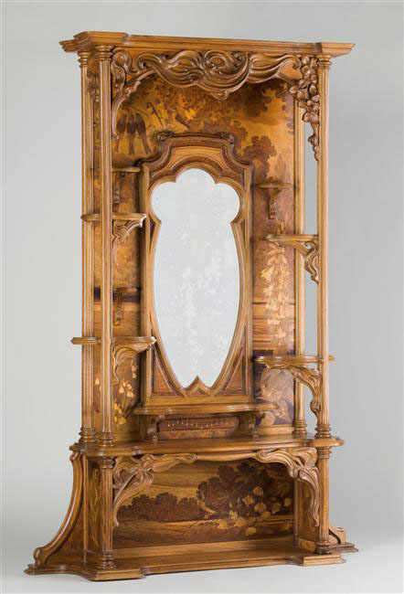 During the Second Empire, the monumental overmantel is also reinvented, in Neo-Gothic and Neo-Renaissance styles. Marquess Païva’s mansion is decorated with a sculpted wooden overmantel, inspired by the Renaissance, with a broad mirror that has become essential after the Grand Siècle. About 1900, the Art Nouveau of Emile Gallé also designs models that modernize fireplaces.