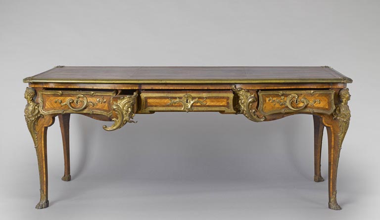 It is the admirable work of Charles Cressent that sets the tone of the Regence style : wood worker and sculptor, he creates a sophisticated decorative vocabulary, modeling his own bronzes and using subtle wood species. He notably borrows to the illustrious Antoine Watteau the spirit of his compositions, and his silhouettes of women from which he designs the “espagnolette”, a woman bronze bust to decorate furniture.