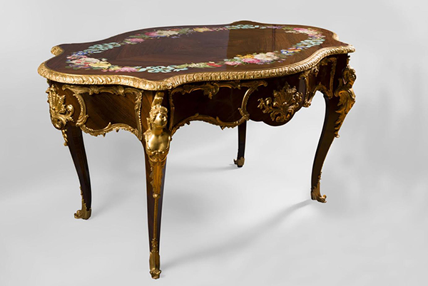 “Supplier of the King and Princes”, he won a silver medal at the Exhibition of Industrial Products in 1849, and was then called "the Prince of Small Cabinetmaking." In 1855, he was awarded the title of "Supplier of the Emperor" at the Universal Exhibition where he exhibited an extraordinary sculpted aviary. The Court commissioned indeed a large number of works, including rosewood planters, lounge tables for the Palais des Tuileries, and a cabinet in mahogany and gilt bronze for Napoleon III’s office. His shop migrated 34 rue de la Paix (1849-1866), then 11 Boulevard des Italiens (1866-1878).