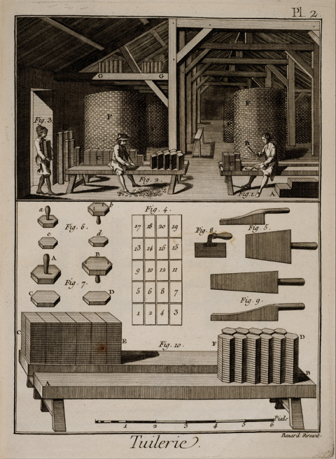 Like for the Provence, the production of tiles knows an important success from the 1850’s and during a century before declining in the late 20th century. Montchanin for instance was the head quarters of one of the most important tiles factory in France. Developed by Charles Avril (1817-1891), it becomes the mecanical and perfected Grande Tuilerie of Bourgogne and merged in 1938 with the Société des grandes tuileries bourguignonnes of Chagny. After 1945, the competition of new materials provokes a progressive decline and the business closing in 1967.
