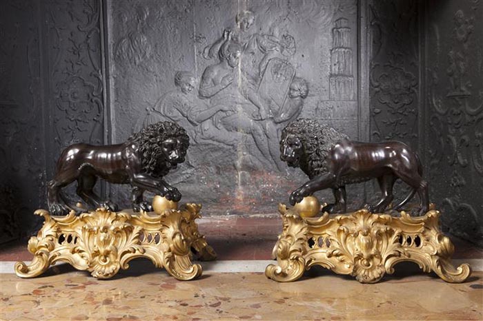 In the Renaissance they began to be made of bronze, which is lighter than iron. The Renaissance andiron is usually topped with a ball. Then, in the classical age, the bourgeoisie and the aristocracy of the seventeenth century were systematically equipped with andirons, often in copper. The decorative interest of the andirons developed under Louis XIII, where we see the appearance of silver andirons ordered by Cardinal Mazarin. Versailles Palace thus counted under Louis XIV some forty pair of silver firedogs, but they were melted to fuel the war effort of the Sun King.