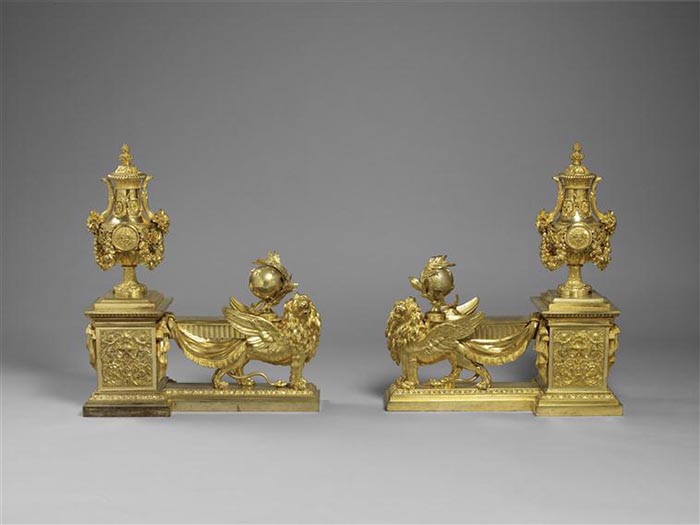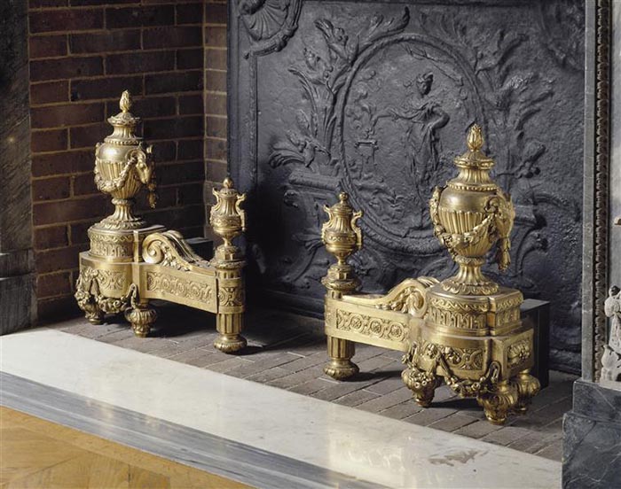 The 18th century, true golden age of andirons, leaves out silver and brass to the benefit of gilt bronze. Like the rest of the interior decoration, the andiron is designed and redesigned by the great ornamentalists of the Louis XV and Louis XVI styles, to the extent that Versailles Palace and Trianon have a very wide variety of them.