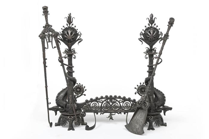 But the firedogs, with their medieval name, also awaken the amateurs of the Neo-Gothic style. Thus, in the 19th century, many wrought iron andirons were built, inspired by the Middle Ages, with more or less fantasy. Eugène Grasset's end-of-the-century andirons kept in the Museum of Decorative Arts in Paris contribute to accentuate the mysterious charm that the space of the fireplace can have.