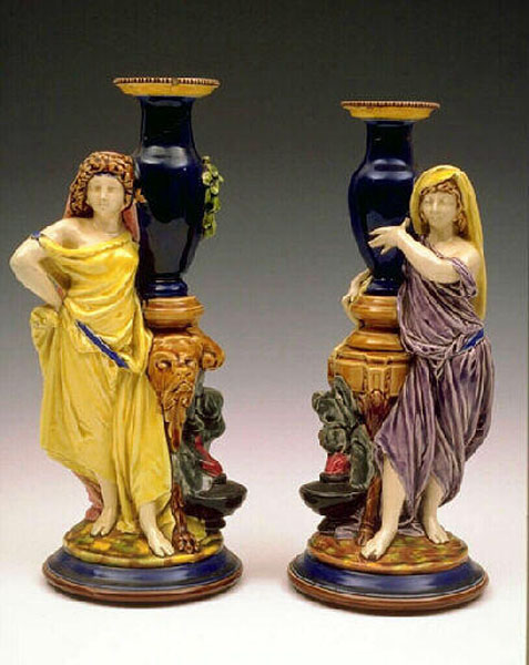 - Photo 7 : Pair of candlesticks. Manufacturer of Sarreguemines. Museum of Sarreguemines Faience. Inventory number:92.264 a and b. Source : www.culture.gouv.fr