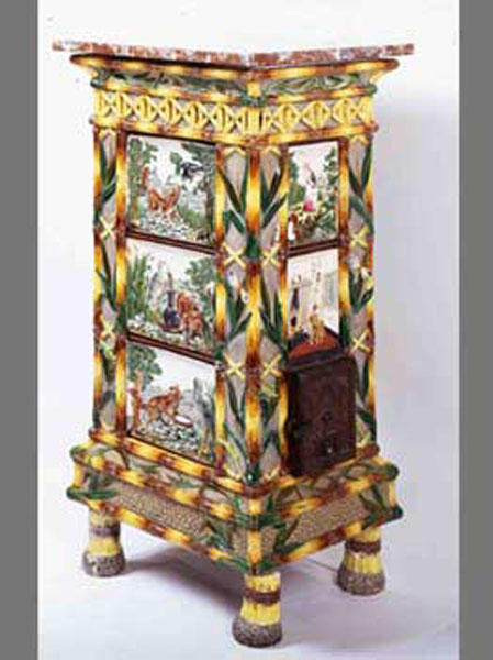 - Photo 9 : Wood-burning stove decorated with Fables de la Fontaine features. Faience by the manufacturer of Sarreguemines. Museum Jean de la Fontaine de Chateau-Thierry. © Museum Jean de la Fontaine.